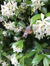 En faisant cela justement, devant la haie de jasmin étoilé, le 25 juin dernier, j'ai surpris et photographié un moro-sphinx, papillon-colibri impressionnant par sa vitesse de déplacement : + de 50 km/h !